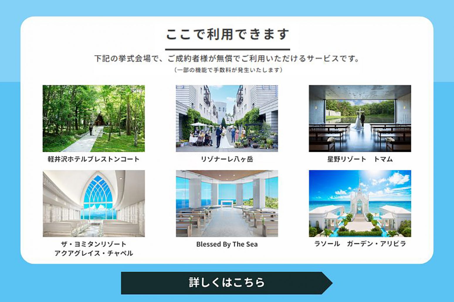弊社が提携した挙式会場の成約者様のみご利用可能です。